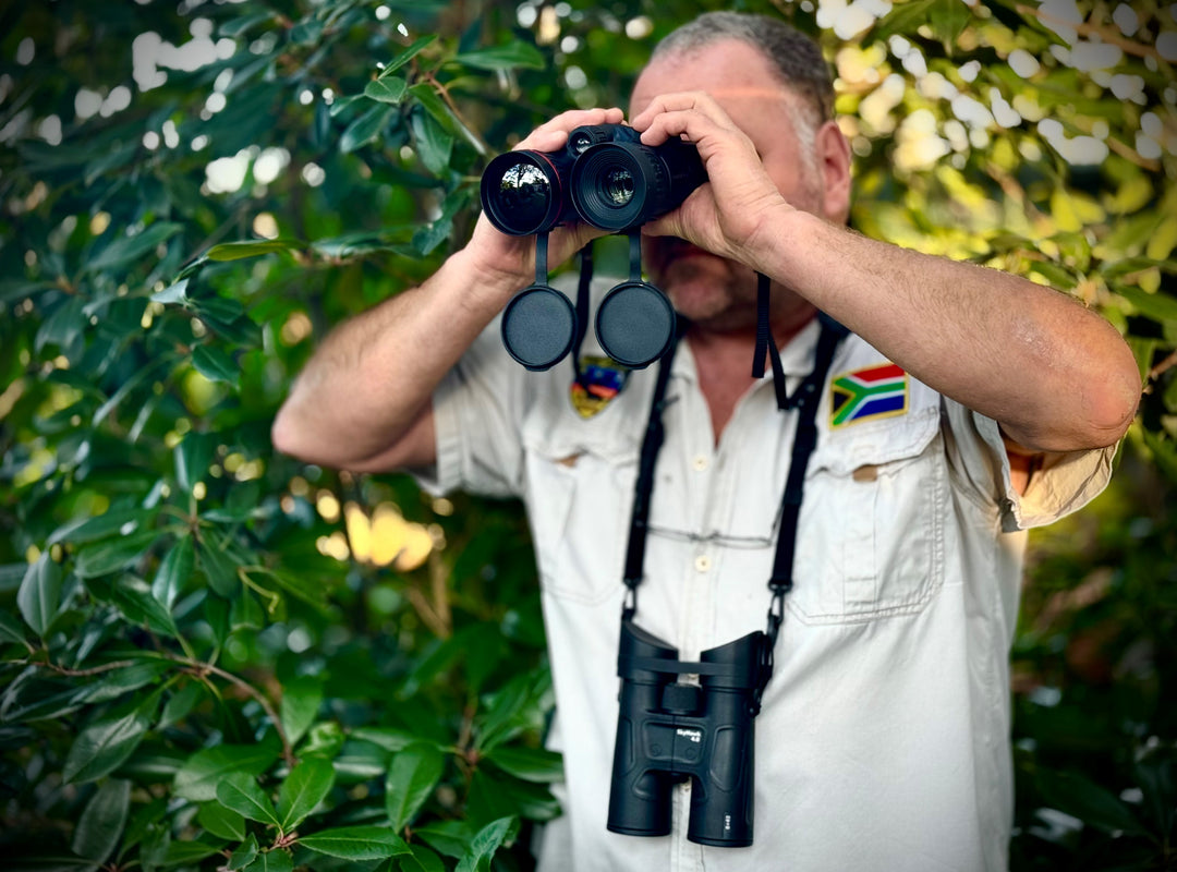 ...and yet still up close. The Fifth Quarter team is equipped with a HIKmicro Habrok Pro HX60LN thermal imaging camera , night vision goggles , and binoculars at all camps. This means you'll experience animal sightings not only during the day, but also during natural, unobserved behavior in the pitch-dark of night. The thermal binoculars make animals visible even in daylight when we can't see them with the naked eye due to their natural camouflage.