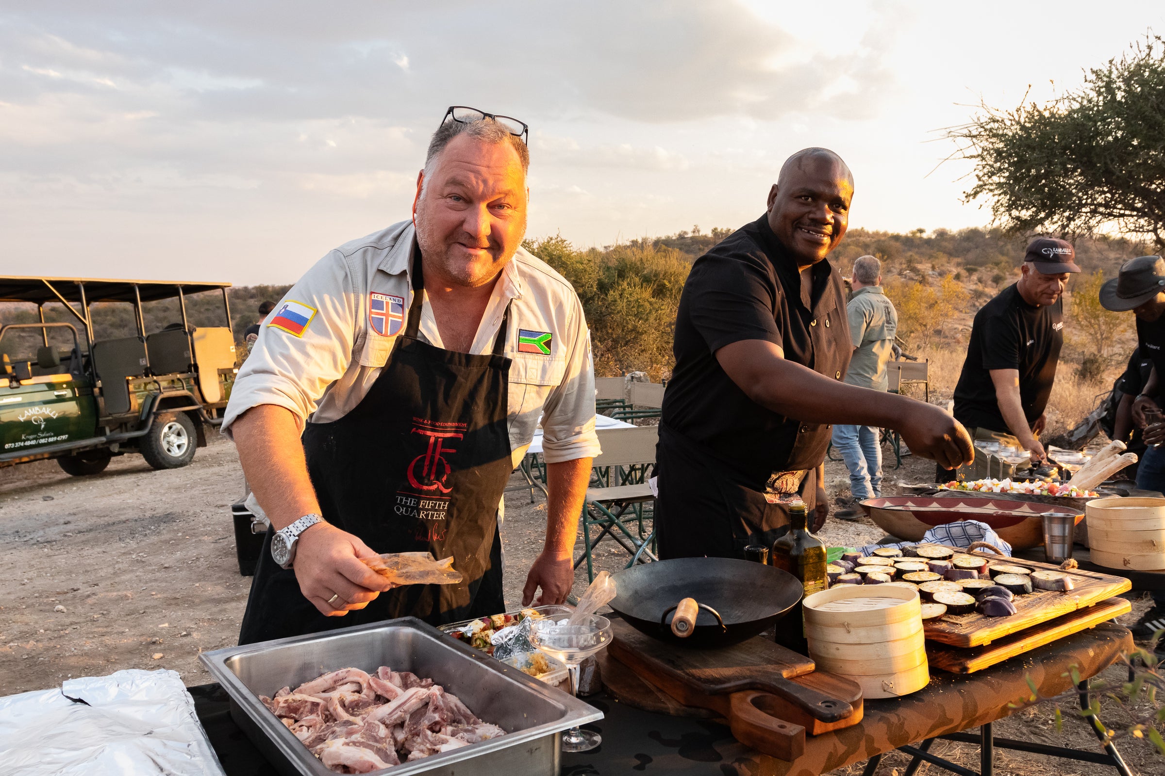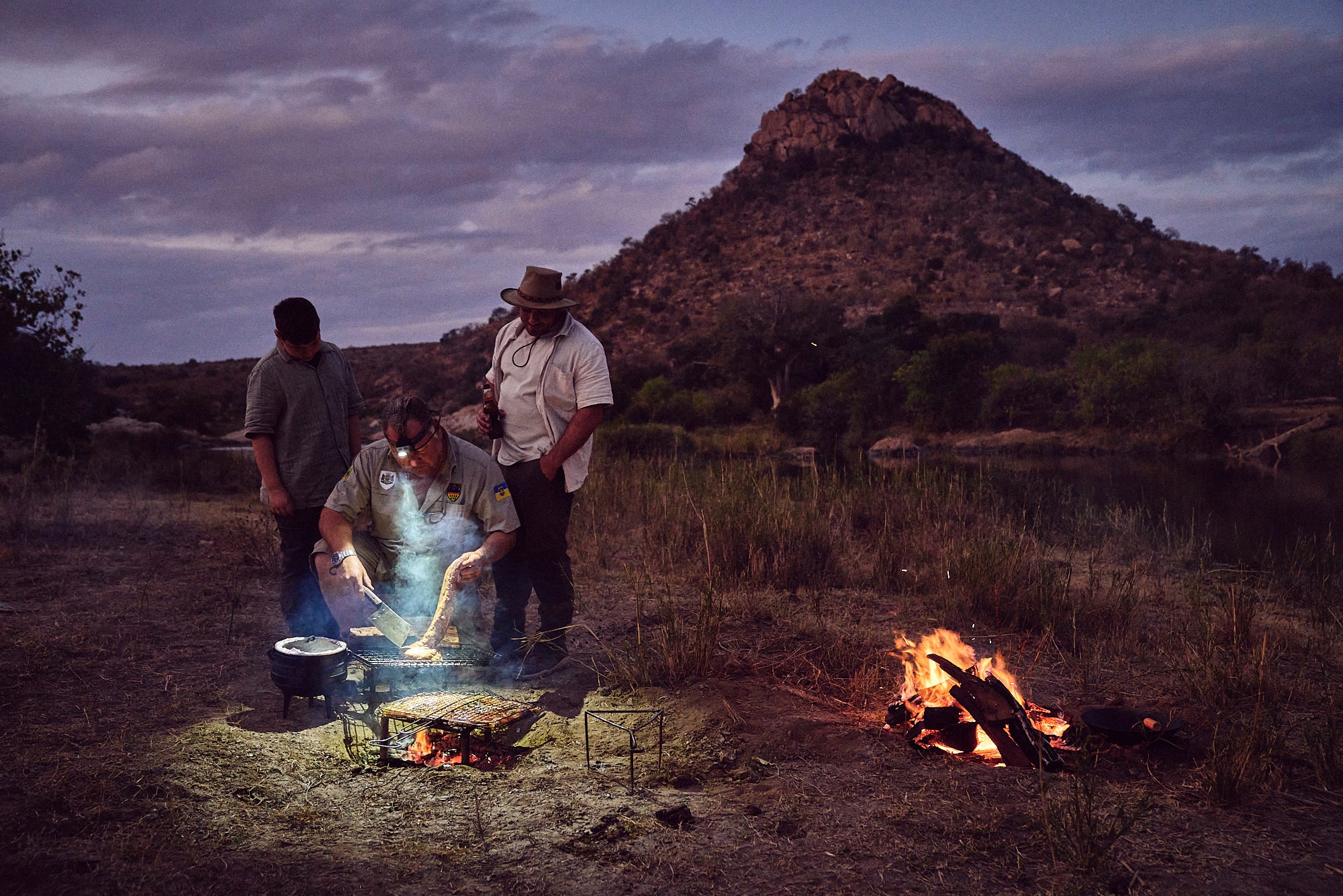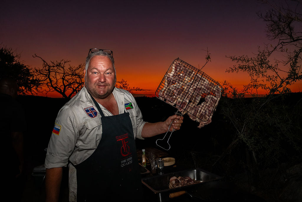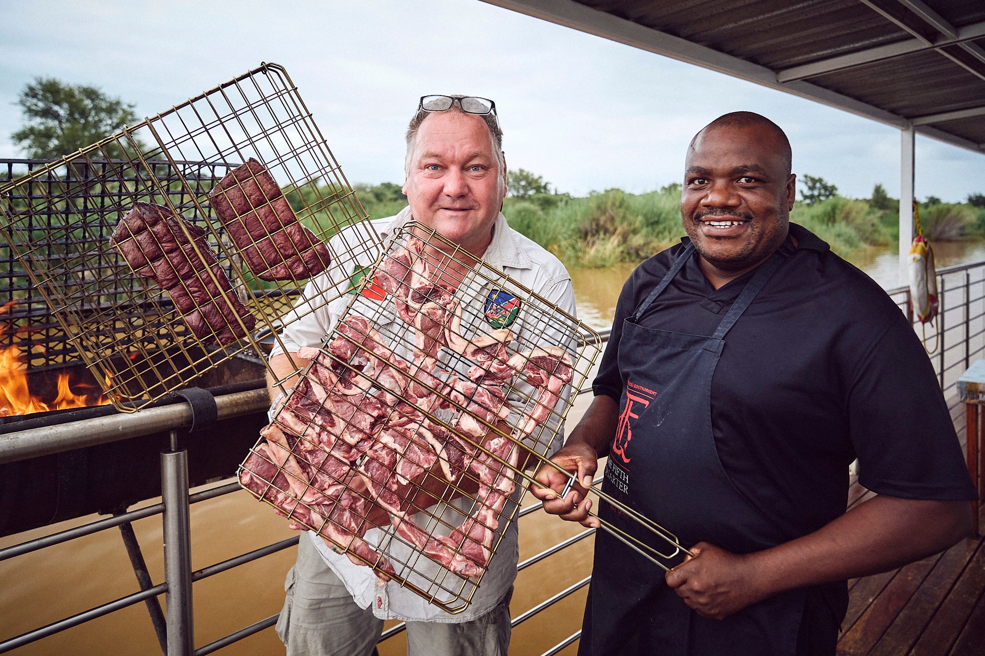 Outdoor-Cooking „Braai“ ist angesagt – die Verpflegung erfolgt fast ausschließlich vom offenen Holzfeuer – auch auf dem Holzboot auf dem mächtigen Olifantsriver! Traditionell zubereitet wird täglich regionales Fleisch, Wildfleisch, Fisch- und Schalentiere aus dem indischen Ozean und der Atlantikküste, Gemüse von lokalen Farmen, alles in ständiger Begleitung einer großartigen Vielfalt an Weinen des „Cape Wine Kingdom“ und südafrikanischen Fynbos-Gins.
