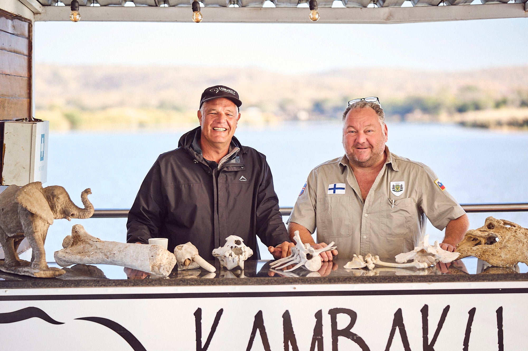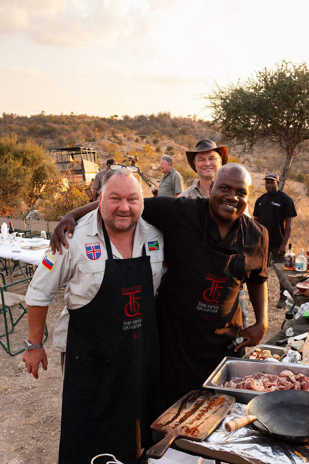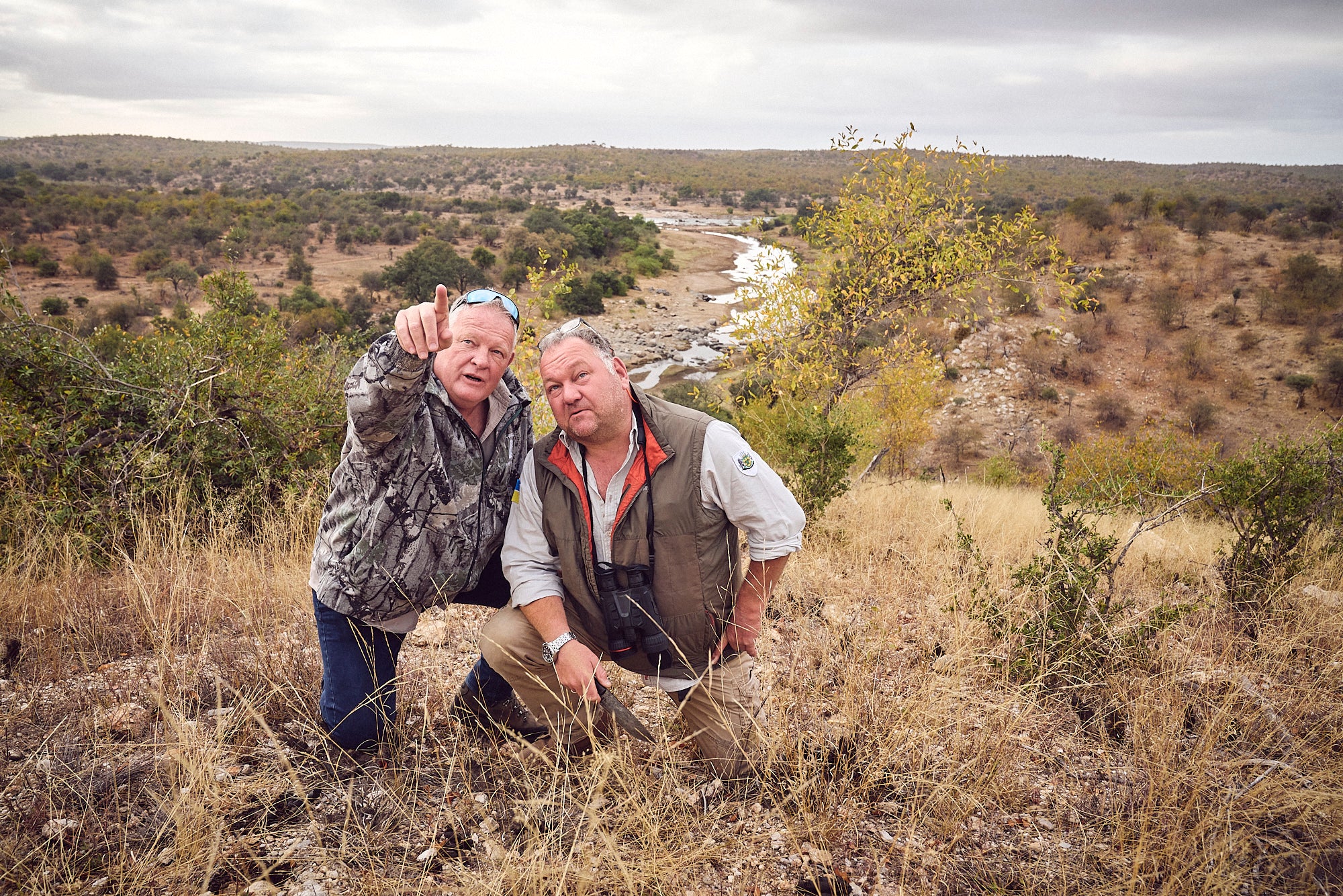 Leon & Roland, "soulmates" im Umgang mit der Natur und Inszenierung südafrikansicher Lebensart. Leon ist Inhaber der Kambaku-Lodge und Rolands Partner. Mit Energie und Bodenhaftung transportieren die beiden Ihre Passion für Fauna, Flora, die Geschichte Südafrikas und authentische Kulinarik im Busch - zu Wasser auf dem Olifants River, zu Land in offenen Jeeps und in der Luft mit dem Heli oder Heißluftballon.