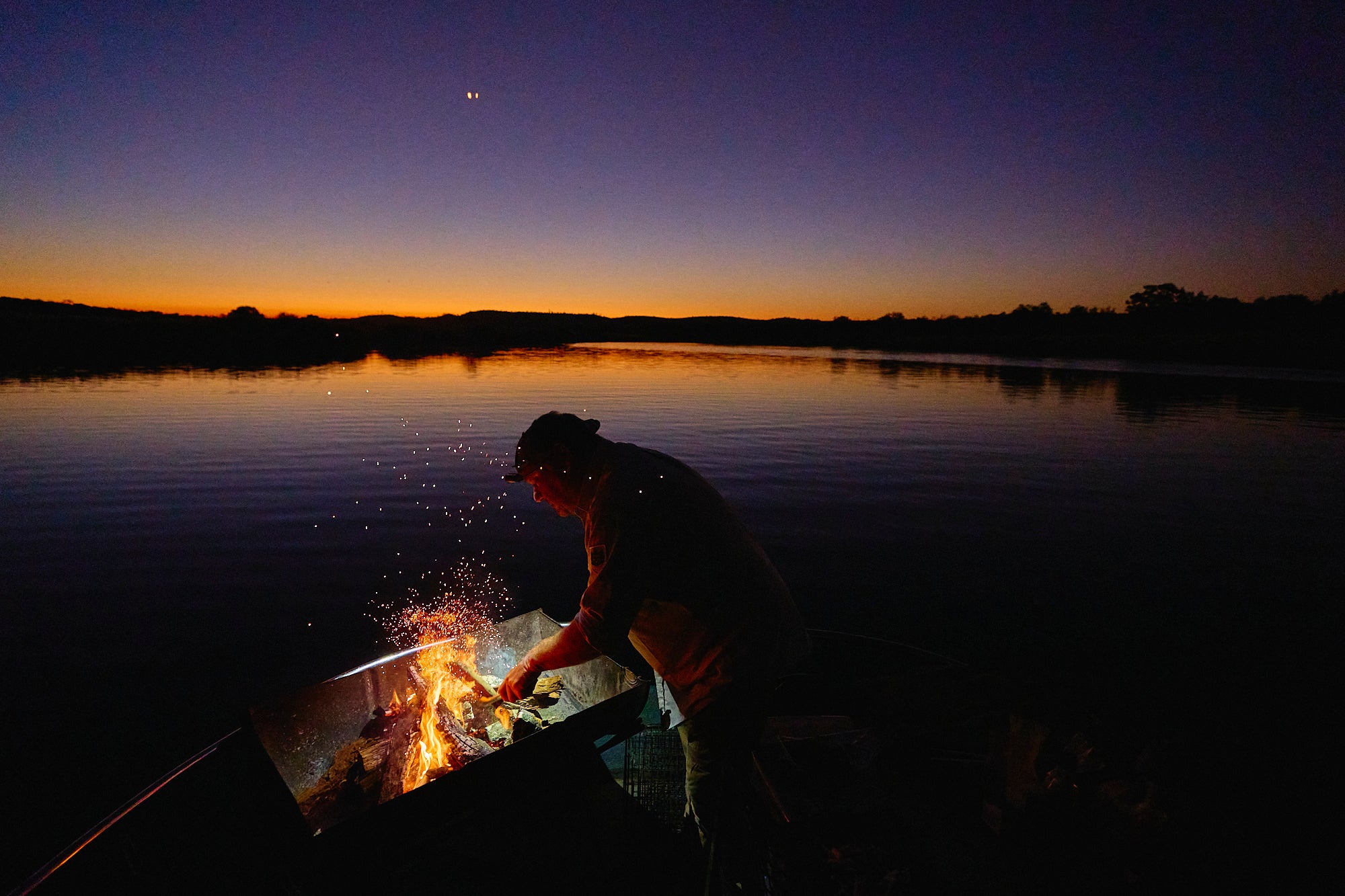 Gekühlter Wein, eiskaltes Bier, südafrikanische Fynbos-Gins, Tonic und natürlich Brandy & Coke der Nationaldrink der Afrikaaner - alles an Bord. Vom Holzfeuer bereitet Roland "snacks" im The Fifth Quarter style, Frühstück oder ein komplettes "braai-feast" während der Nacht-Boot-Safari.